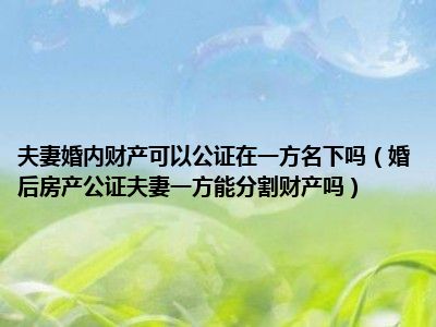 目前大家应该是对婚后房产公证,夫妻一方能分割财产吗比较感兴趣的,所以今天CC就来为大家整理了一些关于婚后房产公证,夫妻一方能分割财产吗方面的相关知识来分享给大家,希望大家会喜欢哦。