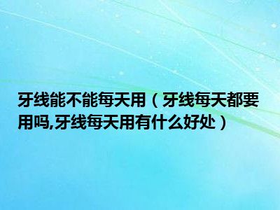 目前大家应该是对牙线每天都要用吗,牙线每天用有什么好处比较感兴趣的,所以今天小编CC就来为大家整理了一些关于牙线每天都要用吗,牙线每天用有什么好处方面的相关知识来分享给大家,希望大家会喜欢哦。