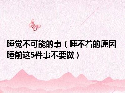 目前大家应该是对睡不着的原因 睡前这5件事不要做比较感兴趣的,所以今天小编CC就来为大家整理了一些关于睡不着的原因 睡前这5件事不要做方面的相关知识来分享给大家,希望大家会喜欢哦。