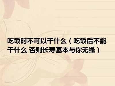 导读 目前大家应该是对吃饭后不能干什么 否则长寿基本与你无缘比较感兴趣的,所以今天小编CC就来为大家整理了一些关于吃饭后不能干什么 否则长...