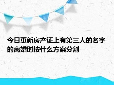目前大家应该是对房产证上有第三人的名字的离婚时按什么方案分割比较感兴趣的,所以今天CC就来为大家整理了一些关于房产证上有第三人的名字的离婚时按什么方案分割方面的相关知识来分享给大家,希望大家会喜欢哦。
