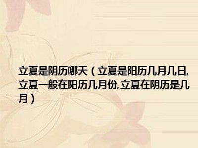 目前大家应该是对立夏是阳历几月几日,立夏一般在阳历几月份,立夏在阴历是几月比较感兴趣的,所以今天小编CC就来为大家整理了一些关于立夏是阳历几月几日,立夏一般在阳历几月份,立夏在阴历是几月方面的相关知识来分享给大家,希望大家会喜欢哦。
