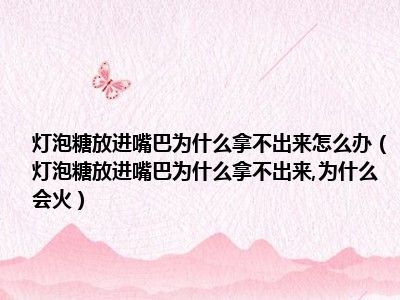 目前大家应该是对灯泡糖放进嘴巴为什么拿不出来,为什么会火比较感兴趣的,所以今天小编CC就来为大家整理了一些关于灯泡糖放进嘴巴为什么拿不出来,为什么会火方面的相关知识来分享给大家,希望大家会喜欢哦。
