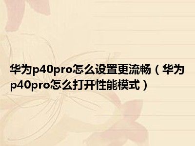 1、 华为p40pro怎么打开性能模式?