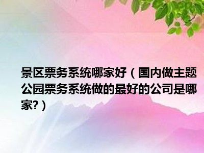 相信目前很多小伙伴对于国内做主题公园票务系统做的最好的公司是哪家?都比较感兴趣,那么小编今天在网上也是收集了一些与国内做主题公园票