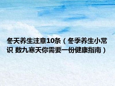 目前大家应该是对冬季养生小常识 数九寒天你需要一份健康指南比较感兴趣的,所以今天小编CC就来为大家整理了一些关于冬季养生小常识 数九寒天你需要一份健康指南方面的相关知识来分享给大家,希望大家会喜欢哦。