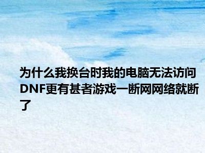 相信目前很多小伙伴对于为何我电脑玩DNF换下频道就进不去了还有就是游戏一掉线就马上段网了都比较感兴趣,那么小编今天在网上也是收集了一些与为何我电脑玩DNF换下频道就进不去了还有就是游戏一掉线就马上段网了相关的信息来分享给大家,希望能够帮助到大家哦。