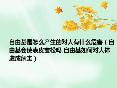 目前大家应该是对自由基会使表皮变松吗,自由基如何对人体造成危害比较感兴趣的,所以今天小编CC就来为大家整理了一些关于自由基会使表皮变松吗,自由基如何对人体造成危害方面的相关知识来分享给大家,希望大家会喜欢哦。