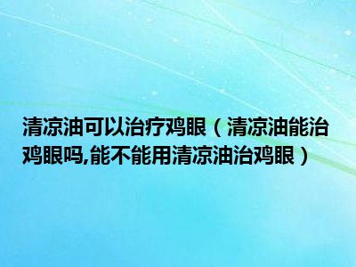 目前大家应该是对清凉油能治鸡眼吗,能不能用清凉油治鸡眼比较感兴趣的,所以今天小编CC就来为大家整理了一些关于清凉油能治鸡眼吗,能不能用清凉油治鸡眼方面的相关知识来分享给大家,希望大家会喜欢哦。
