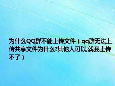 相信目前很多小伙伴对于qq群无法上传共享文件为什么?其他人可以,就我上传不了。都比较感兴趣,那么小编今天在网上也是收集了一些与qq群无法上传共享文件为什么?其他人可以,就我上传不了。相关的信息来分享给大家,希望能够帮助到大家哦。