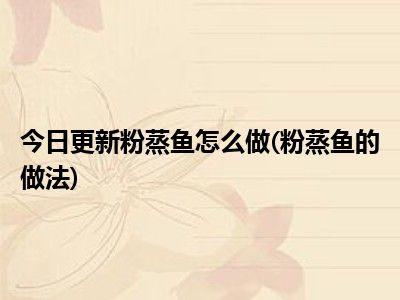 目前上述的内容应该能够为大家解答出大家对于粉蒸鱼怎么做(粉蒸鱼的做法)的疑惑了,所以如果大家还想要了解更多的知识内容,也可以关注本站其他文章进行了解哦。