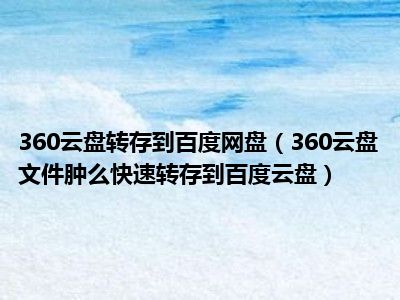 相信目前很多小伙伴对于360云盘文件肿么快速转存到百度云盘都比较感兴趣,那么小编今天在网上也是收集了一些与360云盘文件肿么快速转存到百度云盘相关的信息来分享给大家,希望能够帮助到大家哦。