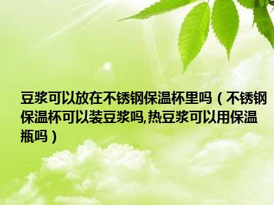 目前大家应该是对不锈钢保温杯可以装豆浆吗,热豆浆可以用保温瓶吗比较感兴趣的,所以今天小编CC就来为大家整理了一些关于不锈钢保温杯可以装豆浆吗,热豆浆可以用保温瓶吗方面的相关知识来分享给大家,希望大家会喜欢哦。