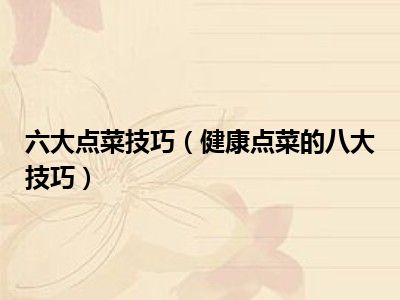 目前大家应该是对健康点菜的八大技巧比较感兴趣的,所以今天小编CC就来为大家整理了一些关于健康点菜的八大技巧方面的相关知识来分享给大家,希望大家会喜欢哦。