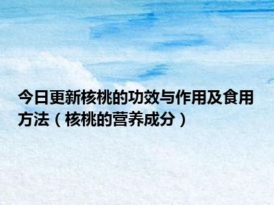 目前上述的内容应该能够为大家解答出大家对于核桃的功效与作用及食用方法(核桃的营养成分)的疑惑了,所以如果大家还想要了解更多的知识内容,也可以关注本站其他文章进行了解哦。