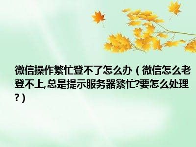 相信目前很多小伙伴对于微信怎么老登不上,总是提示服务器繁忙?要怎么处理?都比较感兴趣,那么小编今天在网上也是收集了一些与微信怎么老登不上,总是提示服务器繁忙?要怎么处理?相关的信息来分享给大家,希望能够帮助到大家哦。