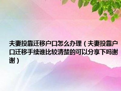 导读 目前大家应该是对夫妻投靠户口迁移手续谁比较清楚的,可以分享下吗,谢谢!比较感兴趣的,所以今天好房网小编CC就来为大家整理了一些关于夫
