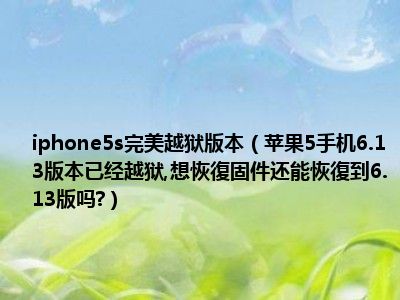 导读相信目前很多小伙伴对于苹果5手机6.13版本已经越狱,想恢復固件还能恢復到6.13版吗?都比较感兴趣,那么小编今天在网上也是收集了一些与苹果...