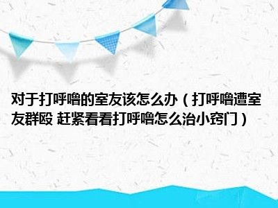目前大家应该是对打呼噜遭室友群殴 赶紧看看打呼噜怎么治小窍门比较感兴趣的,所以今天小编CC就来为大家整理了一些关于打呼噜遭室友群殴 赶紧看看打呼噜怎么治小窍门方面的相关知识来分享给大家,希望大家会喜欢哦。