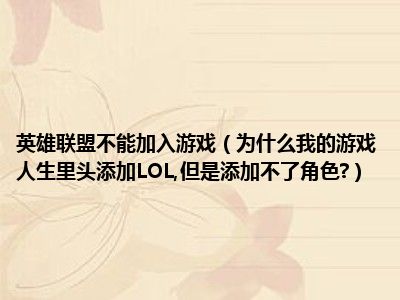 相信目前很多小伙伴对于为什么我的游戏人生里头添加LOL,但是添加不了角色?都比较感兴趣,那么小编今天在网上也是收集了一些与为什么我的游戏人生里头添加LOL,但是添加不了角色?相关的信息来分享给大家,希望能够帮助到大家哦。