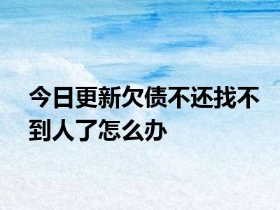 目前大家应该是对欠债不还找不到人了怎么办比较感兴趣的,所以今天CC就来为大家整理了一些关于欠债不还找不到人了怎么办方面的相关知识来分享给大家,希望大家会喜欢哦。