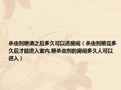 目前大家应该是对杀虫剂喷完多久后才能进入室内,喷杀虫剂的房间多久人可以进入比较感兴趣的,所以今天小编CC就来为大家整理了一些关于杀虫剂喷完多久后才能进入室内,喷杀虫剂的房间多久人可以进入方面的相关知识来分享给大家,希望大家会喜欢哦。