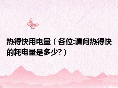 导读相信目前很多小伙伴对于各位:请问“热得快”的耗电量是多少?都比较感兴趣,那么小编今天在网上也是收集了一些与各位:请问“热得快”的耗电...