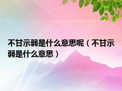 相信目前很多小伙伴对于不甘示弱是什么意思都比较感兴趣,那么小编今天在网上也是收集了一些与不甘示弱是什么意思相关的信息来分享给大家,希望能够帮助到大家哦。