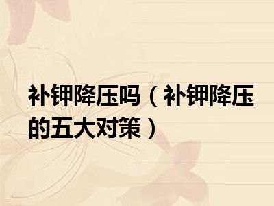 目前大家应该是对补钾降压的五大对策比较感兴趣的,所以今天小编CC就来为大家整理了一些关于补钾降压的五大对策方面的相关知识来分享给大家,希望大家会喜欢哦。
