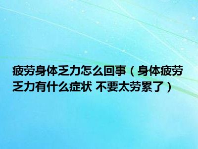 目前大家应该是对身体疲劳乏力有什么症状 不要太劳累了比较感兴趣的,所以今天小编CC就来为大家整理了一些关于身体疲劳乏力有什么症状 不要太劳累了方面的相关知识来分享给大家,希望大家会喜欢哦。