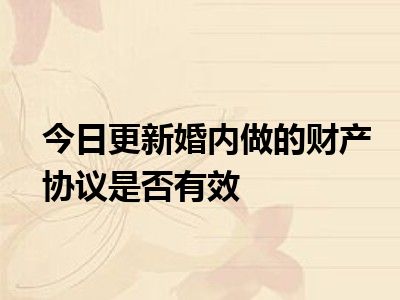目前大家应该是对婚内做的财产协议是否有效比较感兴趣的,所以今天CC就来为大家整理了一些关于婚内做的财产协议是否有效方面的相关知识来分享给大家,希望大家会喜欢哦。