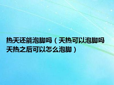 目前大家应该是对天热可以泡脚吗 天热之后可以怎么泡脚比较感兴趣的,所以今天小编CC就来为大家整理了一些关于天热可以泡脚吗 天热之后可以怎么泡脚方面的相关知识来分享给大家,希望大家会喜欢哦。