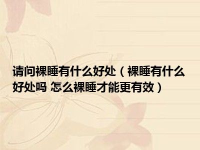 目前大家应该是对裸睡有什么好处吗 怎么裸睡才能更有效比较感兴趣的,所以今天小编CC就来为大家整理了一些关于裸睡有什么好处吗 怎么裸睡才能更有效方面的相关知识来分享给大家,希望大家会喜欢哦。