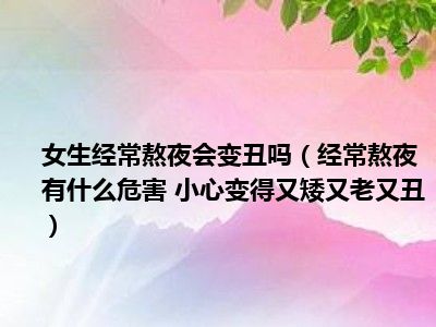 目前大家应该是对经常熬夜有什么危害 小心变得又矮又老又丑比较感兴趣的,所以今天小编CC就来为大家整理了一些关于经常熬夜有什么危害 小心变得又矮又老又丑方面的相关知识来分享给大家,希望大家会喜欢哦。