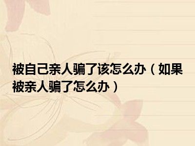 导读目前大家应该是对如果被亲人骗了怎么办比较感兴趣的,所以今天CC就来为大家整理了一些关于如果被亲人骗了怎么办方面的相关知识来分享给大家...
