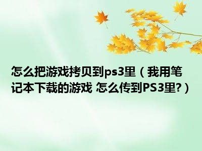 相信目前很多小伙伴对于我用笔记本下载的游戏 怎么传到PS3里?都比较感兴趣,那么小编今天在网上也是收集了一些与我用笔记本下载的游戏 怎么传到PS3里?相关的信息来分享给大家,希望能够帮助到大家哦。