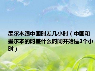 相信目前很多小伙伴对于中国和墨尔本的时差什么时间开始是3个小时都比较感兴趣,那么小编今天在网上也是收集了一些与中国和墨尔本的时差什么时间开始是3个小时相关的信息来分享给大家,希望能够帮助到大家哦。