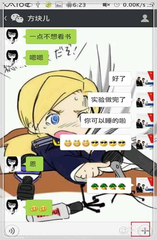 进入到聊天窗口后,点击右下角的“+”图标,打开分享的功能按钮。