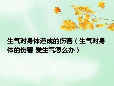 目前大家应该是对生气对身体的伤害 爱生气怎么办比较感兴趣的,所以今天小编CC就来为大家整理了一些关于生气对身体的伤害 爱生气怎么办方面的相关知识来分享给大家,希望大家会喜欢哦。