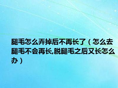 目前大家应该是对怎么去腿毛不会再长,脱腿毛之后又长怎么办比较感兴趣的,所以今天小编CC就来为大家整理了一些关于怎么去腿毛不会再长,脱腿毛之后又长怎么办方面的相关知识来分享给大家,希望大家会喜欢哦。