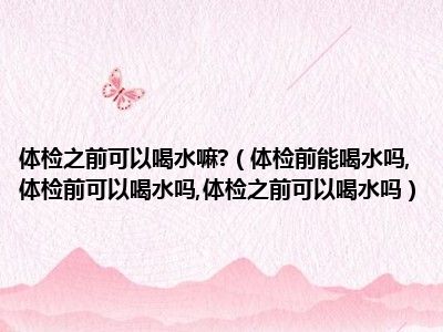 目前大家应该是对体检前能喝水吗,体检前可以喝水吗,体检之前可以喝水吗比较感兴趣的,所以今天小编CC就来为大家整理了一些关于体检前能喝水吗,体检前可以喝水吗,体检之前可以喝水吗方面的相关知识来分享给大家,希望大家会喜欢哦。