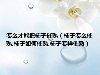 目前大家应该是对柿子怎么催熟,柿子如何催熟,柿子怎样催熟比较感兴趣的,所以今天小编CC就来为大家整理了一些关于柿子怎么催熟,柿子如何催熟,柿子怎样催熟方面的相关知识来分享给大家,希望大家会喜欢哦。