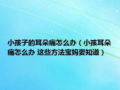 目前大家应该是对小孩耳朵痛怎么办 这些方法宝妈要知道比较感兴趣的,所以今天小编CC就来为大家整理了一些关于小孩耳朵痛怎么办 这些方法宝妈要知道方面的相关知识来分享给大家,希望大家会喜欢哦。