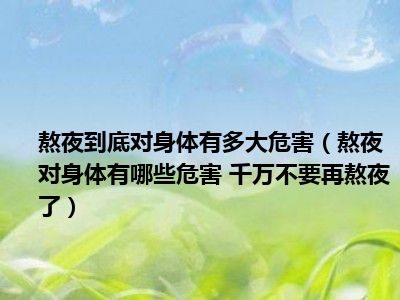 目前大家应该是对熬夜对身体有哪些危害 千万不要再熬夜了比较感兴趣的,所以今天小编CC就来为大家整理了一些关于熬夜对身体有哪些危害 千万不要再熬夜了方面的相关知识来分享给大家,希望大家会喜欢哦。