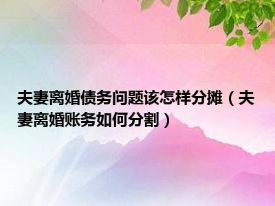 目前大家应该是对夫妻离婚账务如何分割比较感兴趣的,所以今天CC就来为大家整理了一些关于夫妻离婚账务如何分割方面的相关知识来分享给大家,希望大家会喜欢哦。