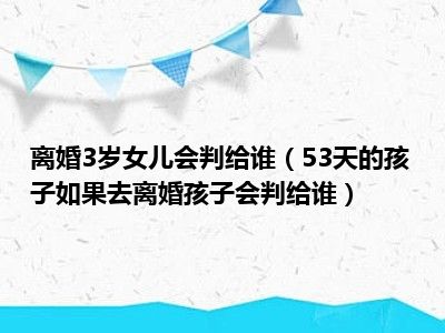 53天的孩子如果去离婚孩子会判给母亲。离婚后,不满两周岁的子女,以由母亲直接抚养为原则。离婚后,父母对于子女仍有抚养、教育、保护的权利和义务。不直接抚养子女的父亲应当支付子女抚养费。