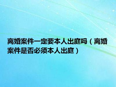 目前大家应该是对离婚案件是否必须本人出庭比较感兴趣的,所以今天CC就来为大家整理了一些关于离婚案件是否必须本人出庭方面的相关知识来分享给大家,希望大家会喜欢哦。