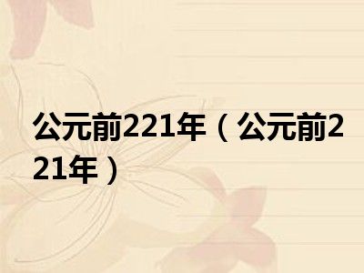 导读 相信目前很多小伙伴对于公元前221年都比较感兴趣,那么小搜今天在网上也是收集了一些与公元前221年相关的信息来分享给大家,希望能够帮助到