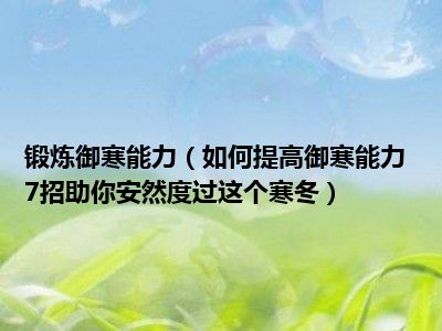 目前大家应该是对如何提高御寒能力 7招助你安然度过这个寒冬比较感兴趣的,所以今天小编CC就来为大家整理了一些关于如何提高御寒能力 7招助你安然度过这个寒冬方面的相关知识来分享给大家,希望大家会喜欢哦。