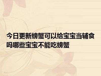 通常而言,宝宝的辅食是以糊类食物、蔬菜、禽肉类为主。生活中,确实很少有妈妈会这么早给宝宝吃螃蟹,主要是担心螃蟹会引发宝宝过敏。